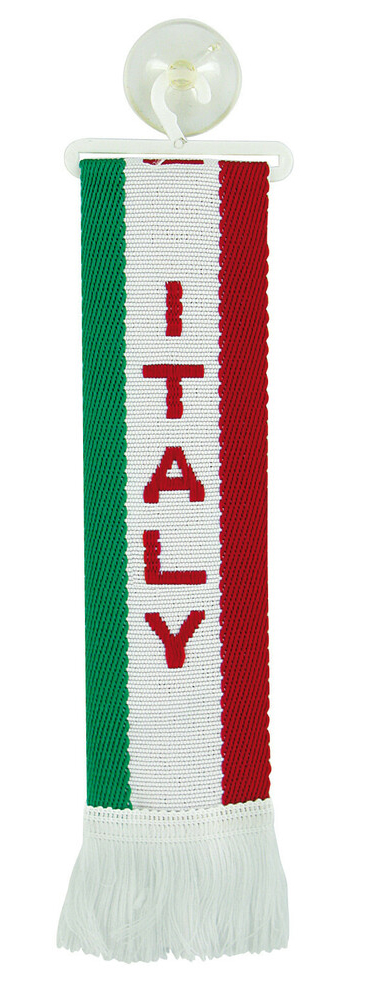 Vlajka Itálie s přísavkou a věšákem. Výška 25cm včetně přísavky.