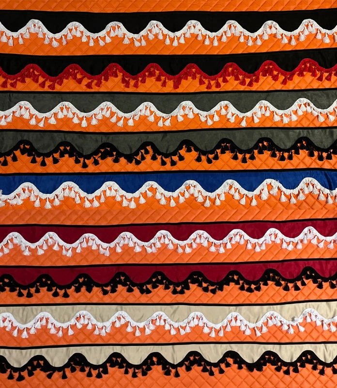 Borduru nedoporučujeme prát v pračce, z důvodu možného zabarvení třásní.