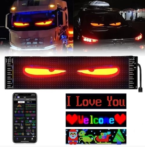 LED panel oči o rozměru 60x12cm, USB/USB-C – do kamionu nebo dodávky. Flexibilní pixelová obrazovka má